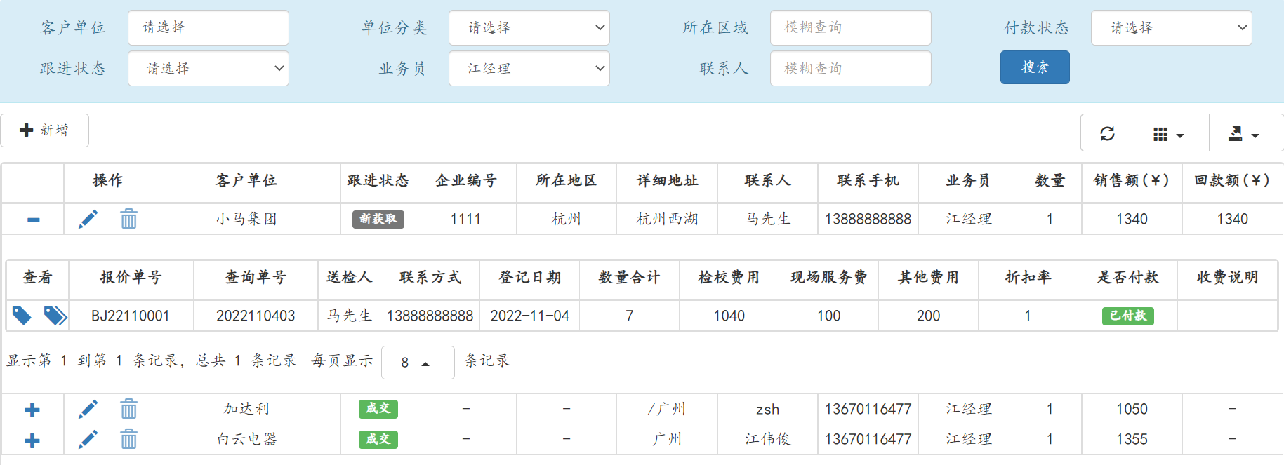 高度契合计量检定、校准、质量检测行业业务场景,提高检测机构业务能力!功能丰富,客户由业务员专人负责,业务跟进、报价,委托单,客户信息修改留痕,防止有意无意破坏