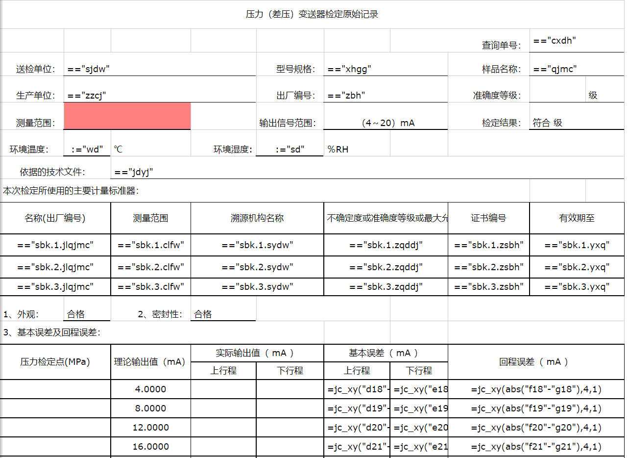 用户可自主定义原始记录模板,也可以从系统提供的公用模板中选择使用,从而在原始记录填报时实现自动计算、自动修约等,大大减少检定人员的工作复杂度,提高准确度。